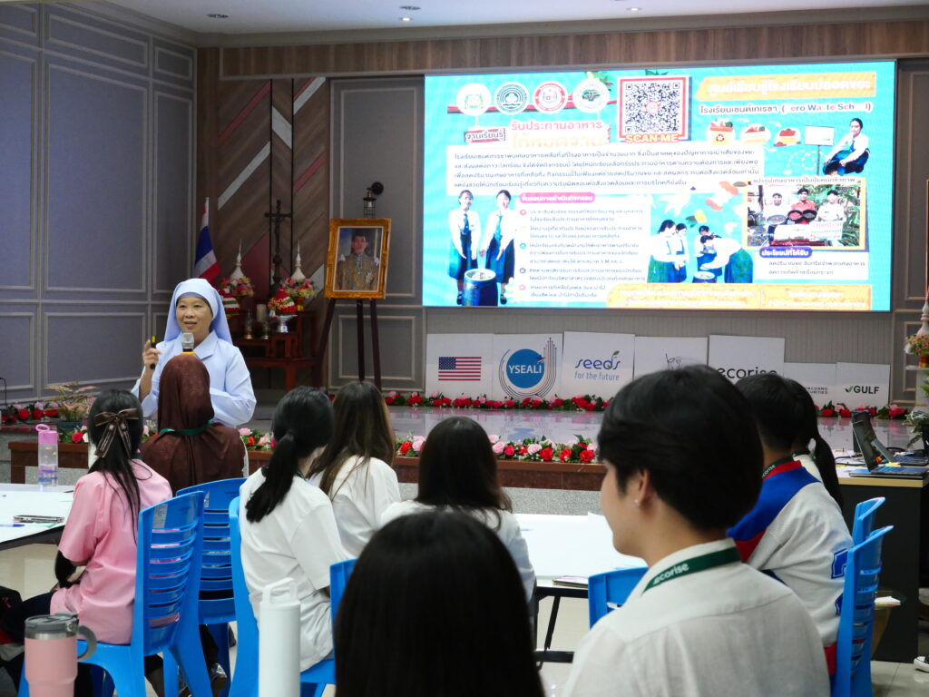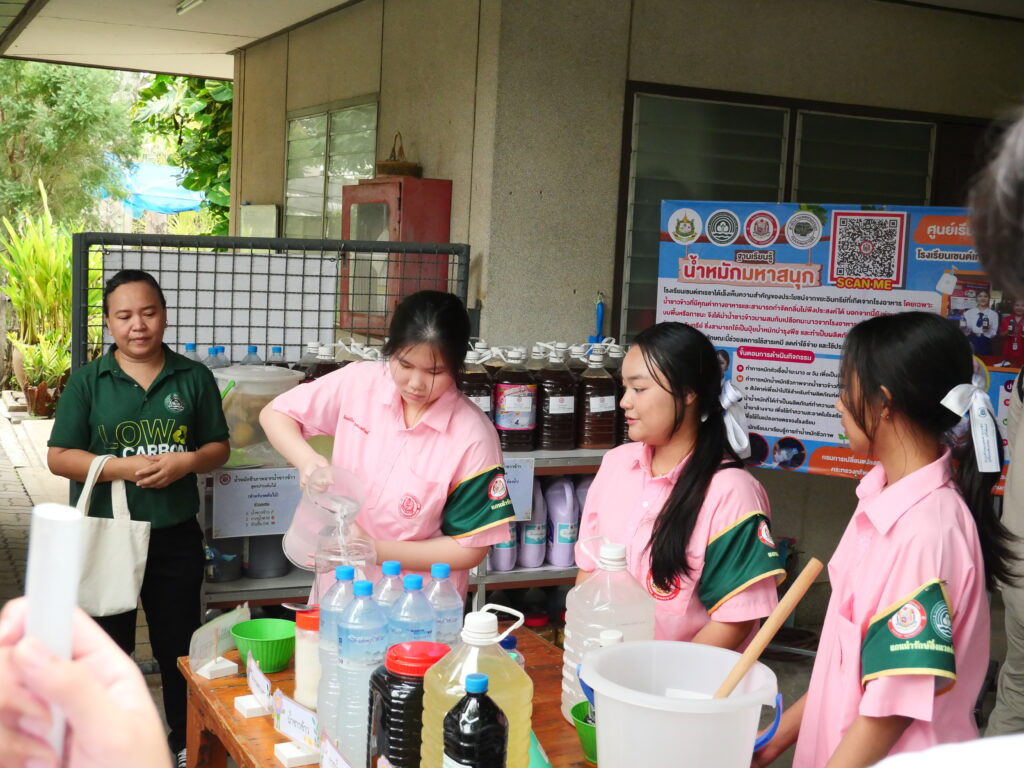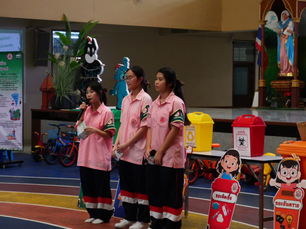 ในช่วงเวลาของการศึกษาดูงาน ทีมผู้บริหารและครูผู้สอนของโรงเรียนได้บรรยายและสาธิตกระบวนการต่าง ๆ ที่โรงเรียนเซนต์เทเรซาได้นำมาใช้ในการจัดการขยะอย่างเป็นระบบ ตั้งแต่การคัดแยกขยะที่ต้นทาง การลดการใช้พลาสติกแบบใช้ครั้งเดียว ไปจนถึงการส่งเสริมเศรษฐกิจหมุนเวียน (Circular Economy) ผ่านกิจกรรมต่าง ๆ ภายในโรงเรียน นอกจากนี้ ยังได้มีการจัดเตรียม ฐานเรียนรู้ Zero Waste Learning Stations ซึ่งเป็นกิจกรรมที่เด็ก ๆ ได้ลงมือทำจริง เช่น การคัดแยกขยะอย่างถูกวิธี การรีไซเคิลวัสดุเหลือใช้ และการทำปุ๋ยจากเศษอาหาร ที่ช่วยให้เด็ก ๆ ได้เรียนรู้วิธีการลดขยะและรักษาสิ่งแวดล้อมในชีวิตประจำวัน อีกทั้งเรายังได้ร่วมกันพูดคุยและแลกเปลี่ยนประสบการณ์กับคณะศึกษาดูงานเกี่ยวกับการผลักดันโครงการปลอดขยะในสถานศึกษาของแต่ละแห่ง พร้อมทั้งให้คำแนะนำในการพัฒนาโรงเรียนให้เป็นสถานที่ที่มีความยั่งยืนและรักษาสิ่งแวดล้อม ในช่วงเวลานี้ ทุกท่านได้ร่วมสัมผัสบรรยากาศแห่งการเรียนรู้ที่ทั้งสนุกสนานและสร้างสรรค์ โดยเฉพาะโครงการต่าง ๆ ที่เด็ก ๆ ได้มีส่วนร่วมในการพัฒนา ทั้งการทำงานกลุ่มและการคิดริเริ่มที่เกี่ยวข้องกับการอนุรักษ์สิ่งแวดล้อมอย่างแท้จริง