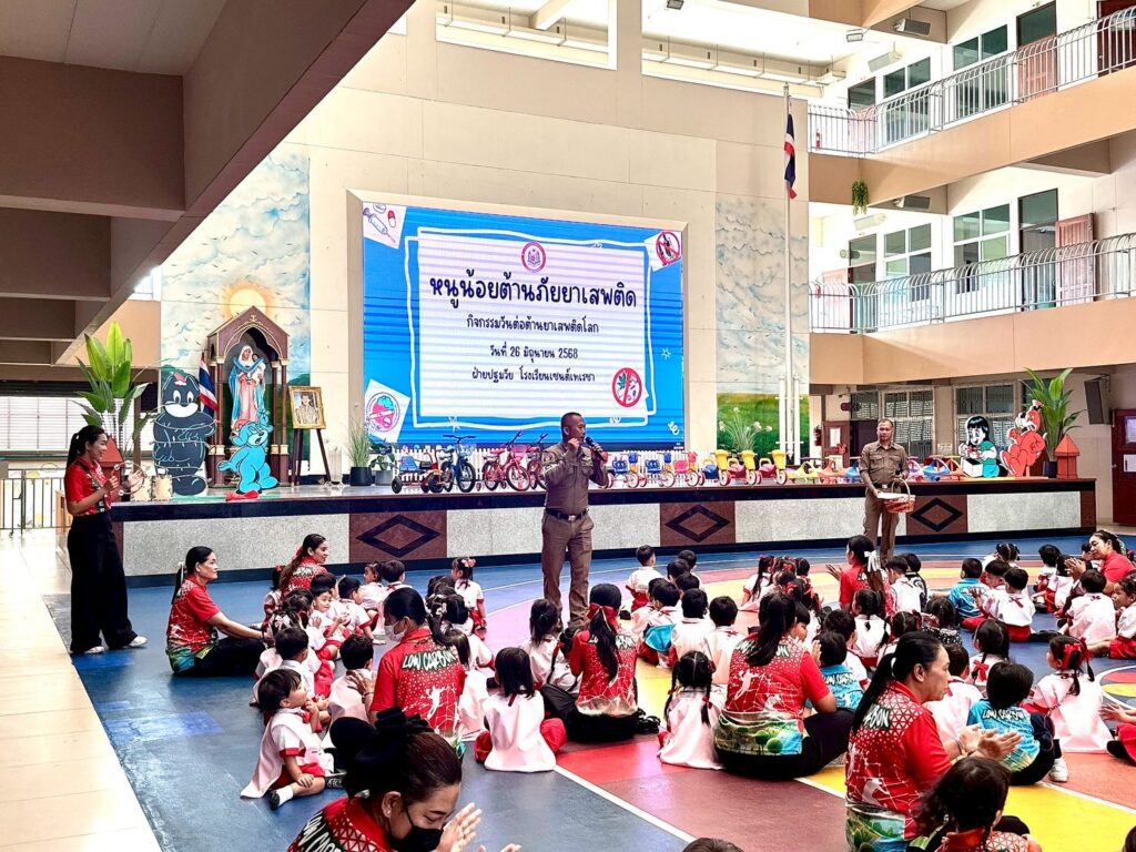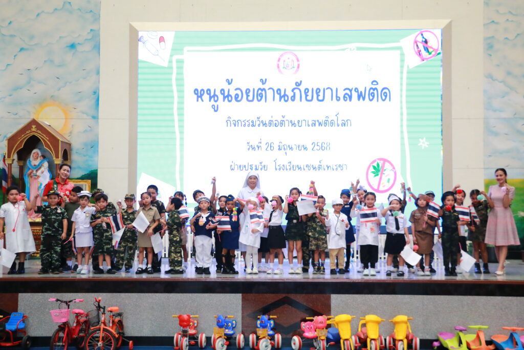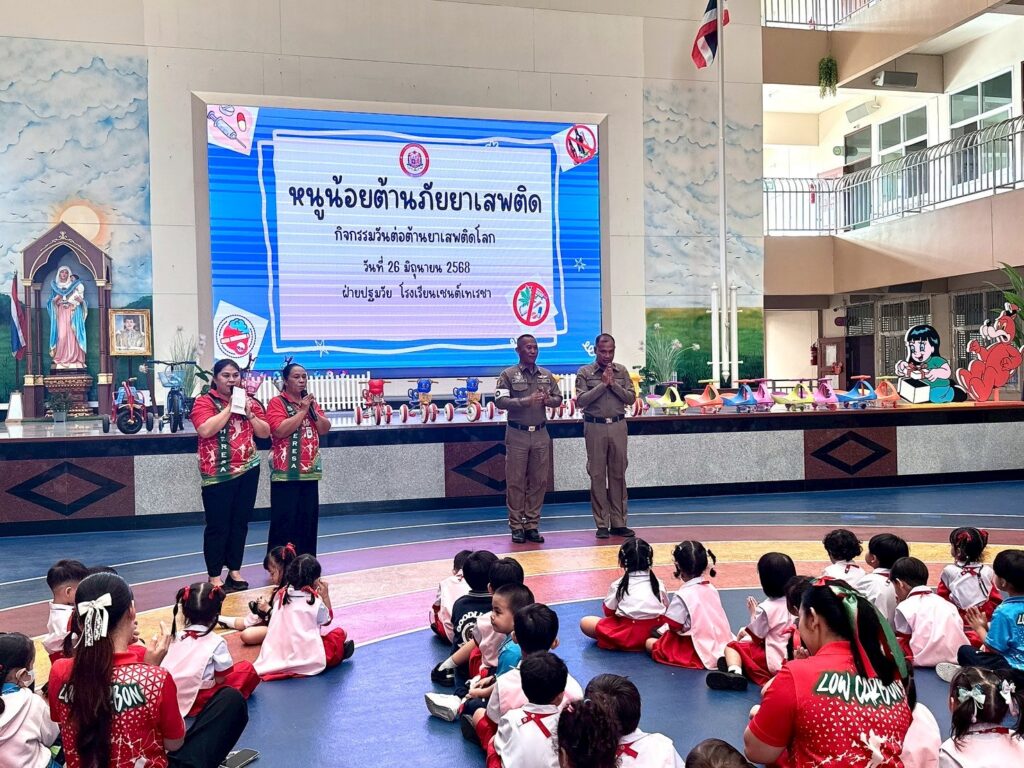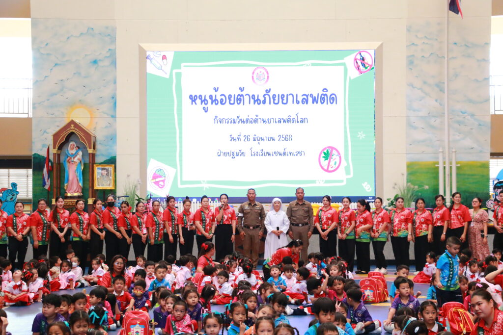 โรงเรียนเซนต์เทเรซาร่วมกับสน.หนองจอก จัดกิจกรรม “หนูน้อยต้านภัยยาเสพติด” ขอขอบคุณ ร.ต.ต. คมศักดิ์ ไทยยัง รองสารวัตรจราจร สน.หนองจอก และ ด.ต. จักรทิพย์ กานุสนธิ์ ผู้บังคับหมู่งานอำนวยการ สน.หนองจอก รวมถึงผู้ปกครองนักเรียนระดับปฐมวัย ที่ให้เกียรติมาร่วมให้ความรู้และแนะแนวการป้องกันภัยยาเสพติด เพื่อสร้างภูมิคุ้มกันและเสริมสร้างความเข้าใจถึงโทษและพิษภัยของยาเสพติดในรูปแบบที่เหมาะสมกับวัย กิจกรรมครั้งนี้สร้างทั้งความรู้ ความตระหนัก และรอยยิ้มให้กับนักเรียนอย่างอบอุ่นและประทับใจ