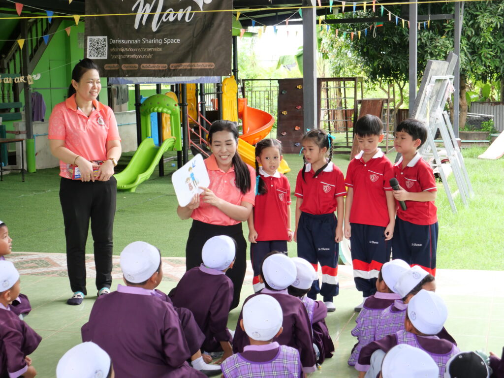 กิจกรรมครั้งนี้มุ่งเน้นการเรียนรู้ผ่านการลงมือปฏิบัติจริง ควบคู่กับการสร้างเสริมสุขนิสัยที่ดี การดูแลสุขภาพร่างกาย และการปลูกฝังจิตสำนึกในการอนุรักษ์สิ่งแวดล้อม โดยคณะครูและนักเรียนได้ร่วมกันออกแบบกิจกรรมที่สอดคล้องกับบริบทของชุมชน เพื่อให้เด็ก ๆ ได้เรียนรู้อย่างสนุกสนาน เกิดความเข้าใจ และสามารถนำไปปรับใช้ในชีวิตประจำวันได้อย่างเหมาะสม การจัดกิจกรรมในครั้งนี้จัดขึ้น ณ ศูนย์พัฒนาเด็กก่อนวัยเรียน ชุมชนแผ่นดินทอง หมู่ที่ 5 ตำบลกระทุ่มราย และศูนย์การเรียนรู้ดาริสซุนนะห์ ศูนย์การเรียนทางเลือกแห่งทางนำ ซึ่งได้รับความร่วมมือและการต้อนรับอย่างอบอุ่นจากผู้บริหาร ครู ผู้ปกครอง และคนในชุมชน บรรยากาศตลอดการจัดกิจกรรมเต็มไปด้วยความอบอุ่น ความร่วมมือ และรอยยิ้มของเด็ก ๆ